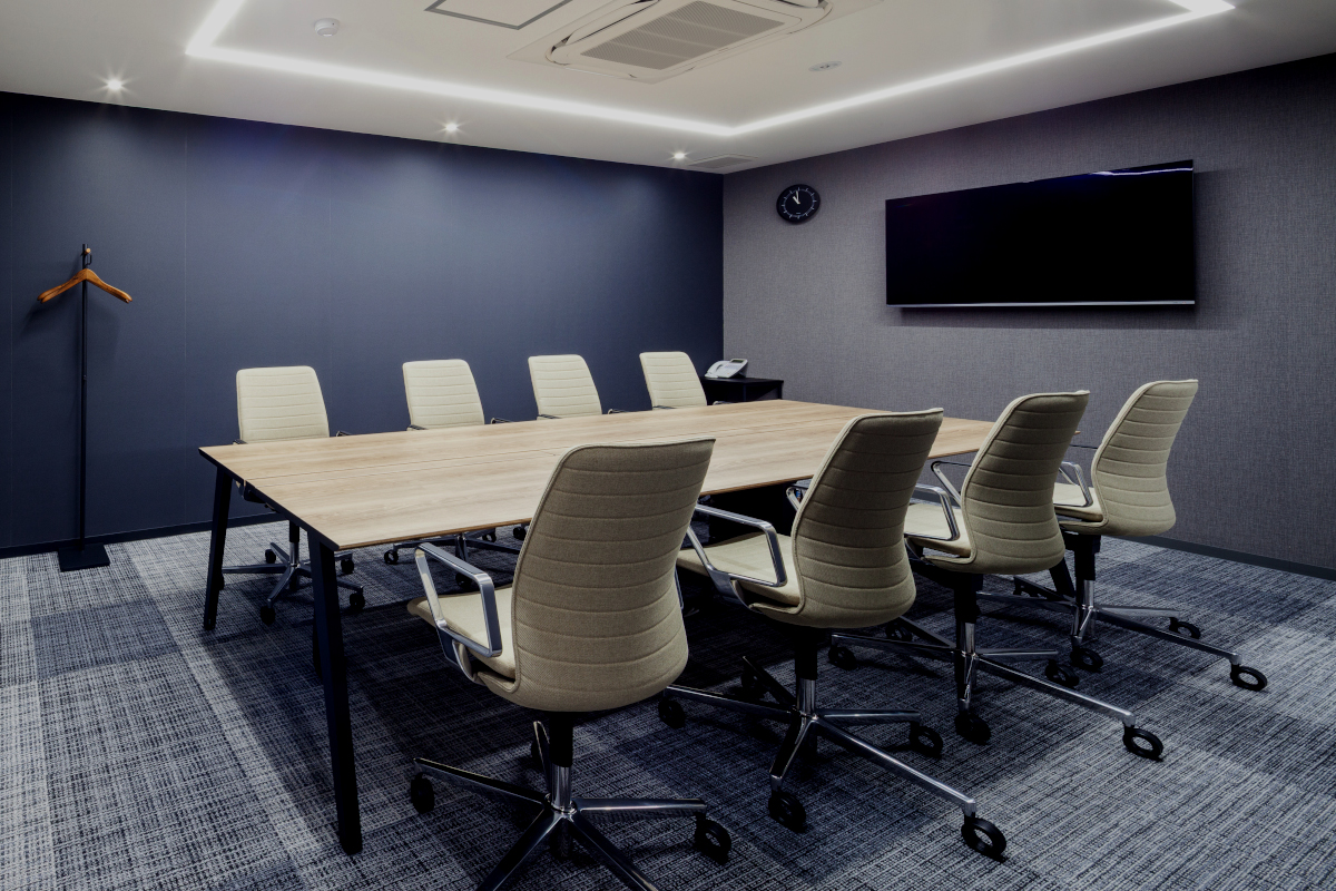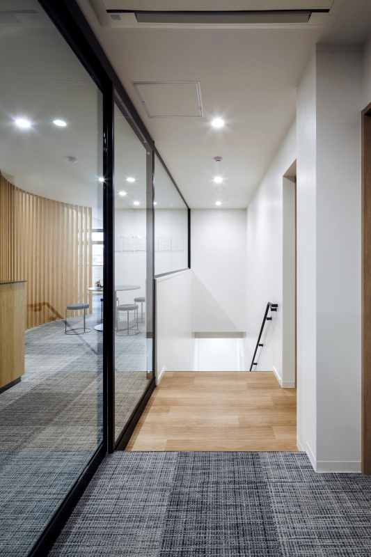各諸室においては、この白を背景に「黒の壁と天井」、そして「オークナチュラル」の素材を掛け合わせることで、集中力を高める重厚さと温かみが共存する空間を構築しました。