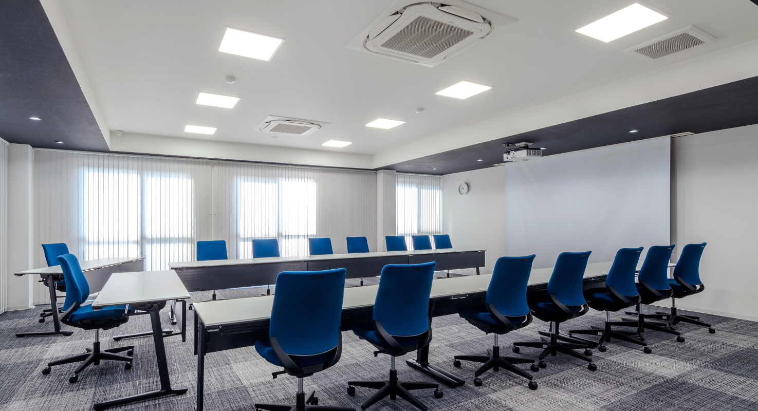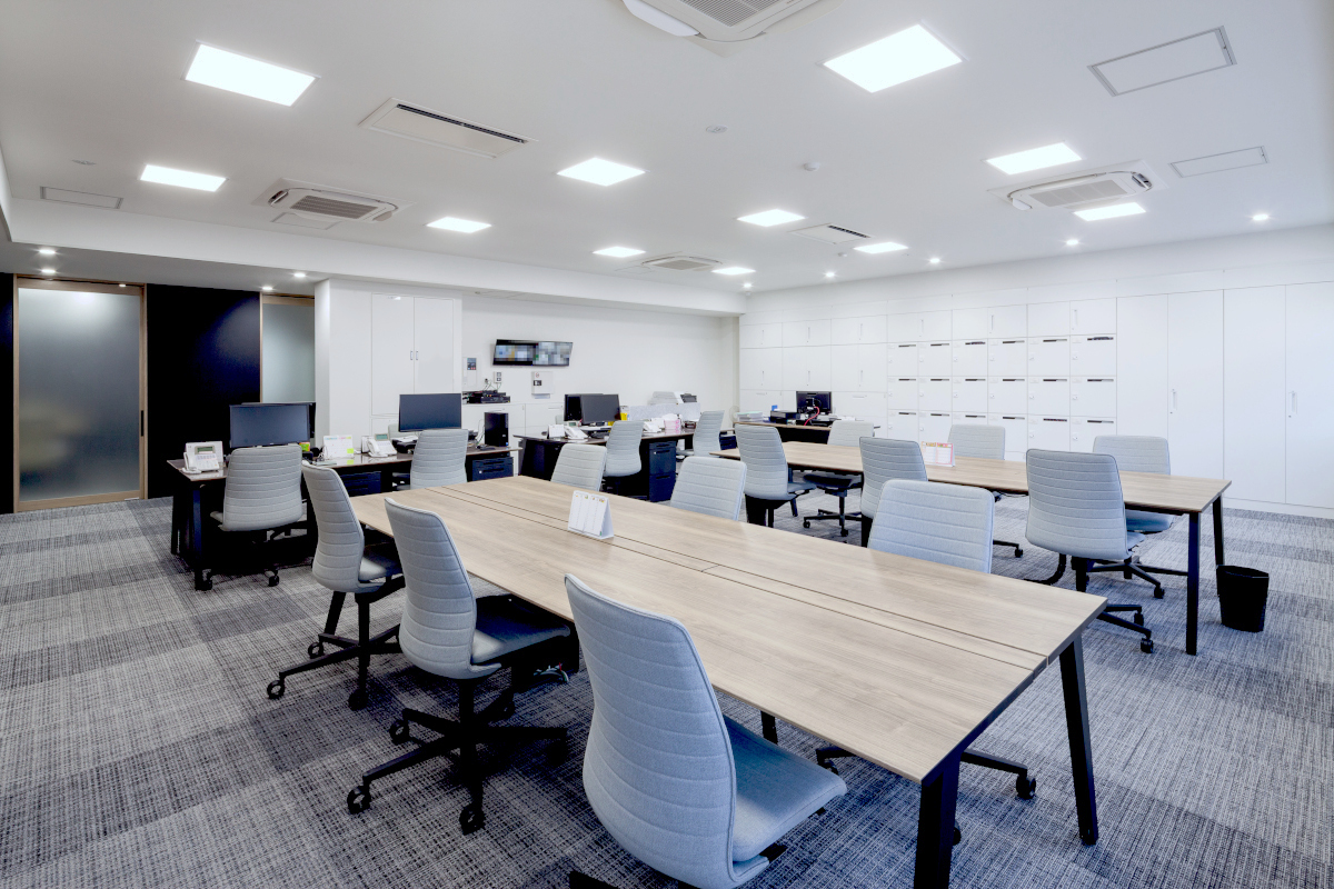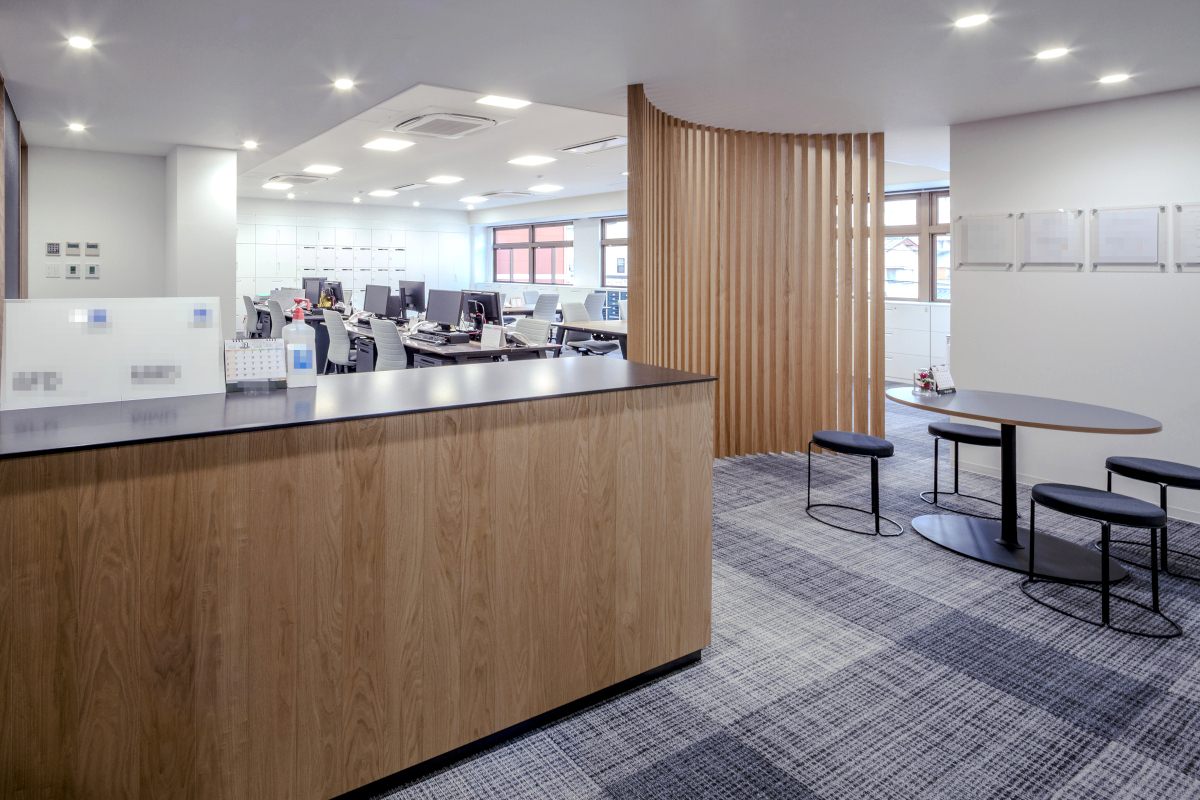 香川県高松市に建つ築26年の鉄骨造3階建てオフィスの内外装、オフィス什器、資材倉庫などフルリノベーション